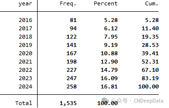 任何使用CNDD数据等产品的单位和个人,承诺只将CNDD的数据等用于学术研究,并在所得研究成果(包括但不限于学术论文、咨询报告等)中注明数据来源于CNDD。数据来源的注明方式请参考:“本研究数据来源于中国深度数据库CNDD”;英文参考:“We get the data from CNDeepData (CNDD)”。